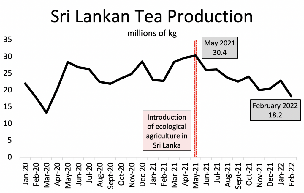 Tea production went down by a mind boggling 40% in a matter of 10 months which affected the exports and hence the balance of payments for the country.
