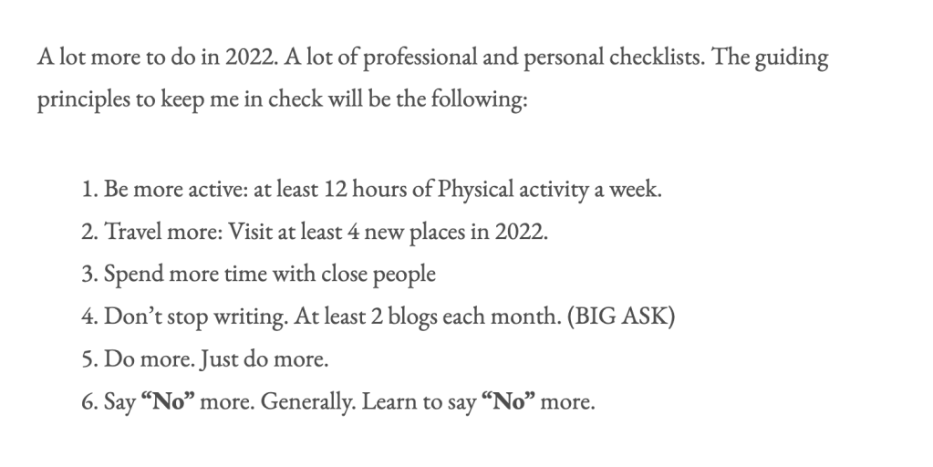 A lot more focus is required in 2023. Again, specific checklists are personal but guiding principles for the year: